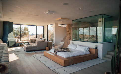 All our rooms have large windows and a balcony. Our quality box spring beds, nature materials, lighted wall units, wooden floors and warm colours ensure a good environment. Because of our infrared heating in every room, for sure, you will feel comfortable and happy